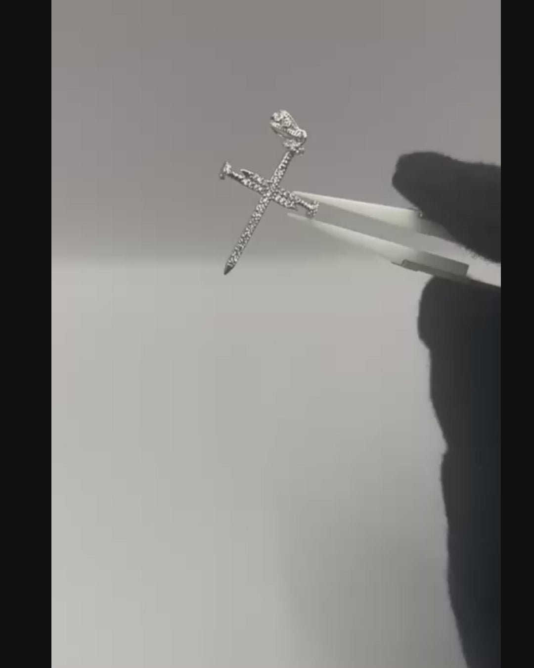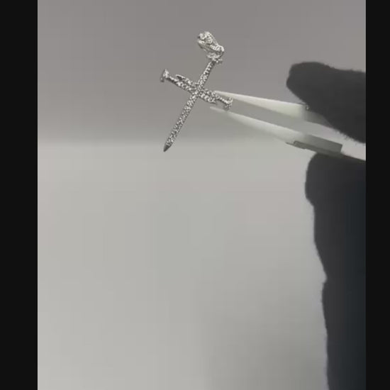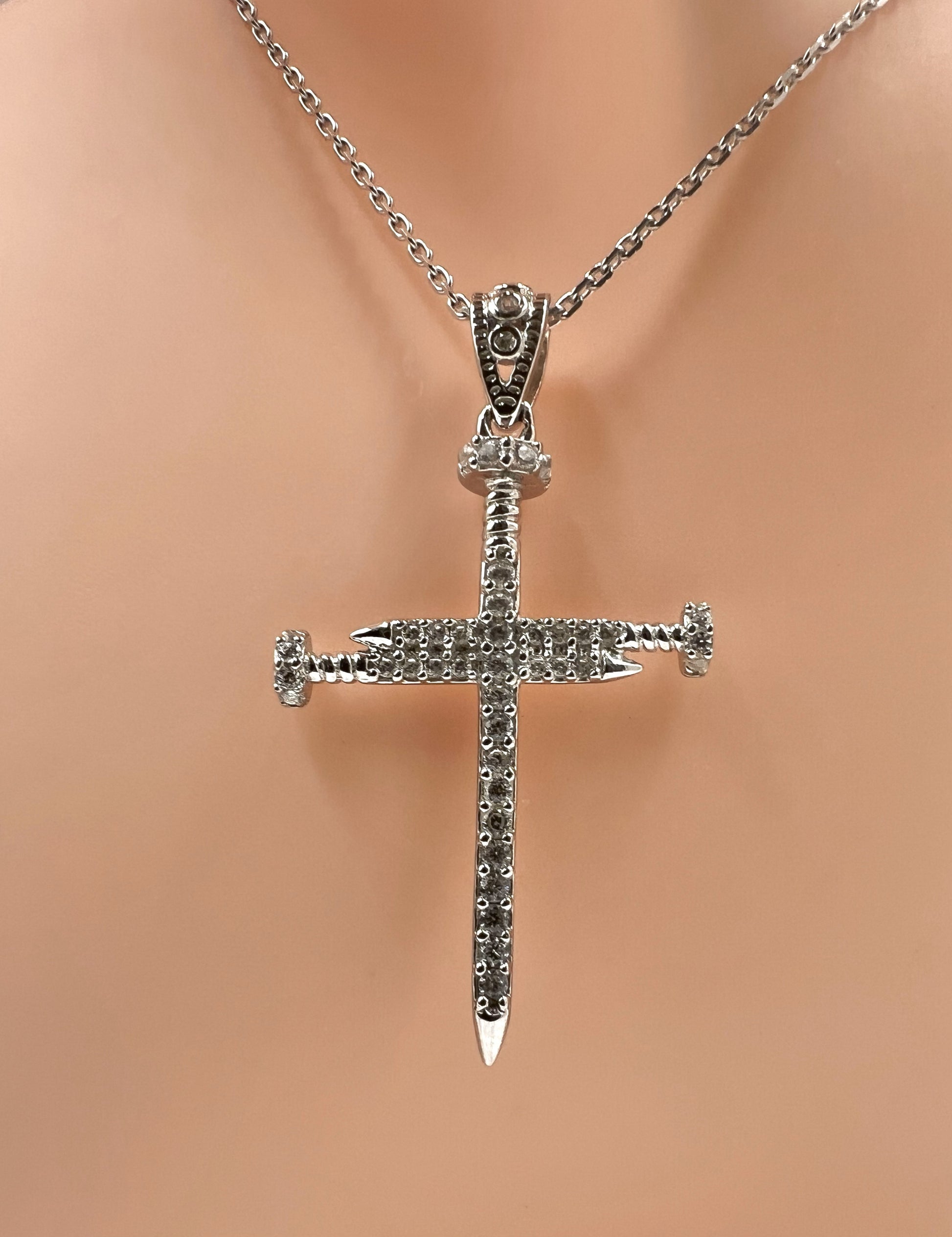 Beautifully crafted and designed, the Nail Cross is a statement piece. Highest quality 925 Sterling silver Rhodium plated with ethically sourced white Cubic Zirconia settings. This cross can be worn on either side.