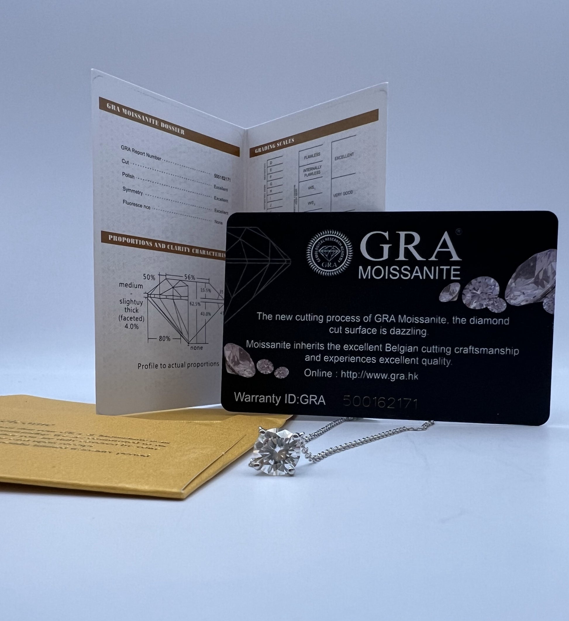 Sterling Silver Round Moissanite Solitaire Necklace – GRA Certified