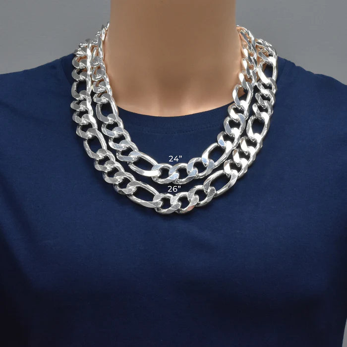 Sterling Silver Solid Figaro Chain, Classic Concave Figaro, Men's & Women's, Everyday Casual Wear, 3+1 Alternating Curb Chain
